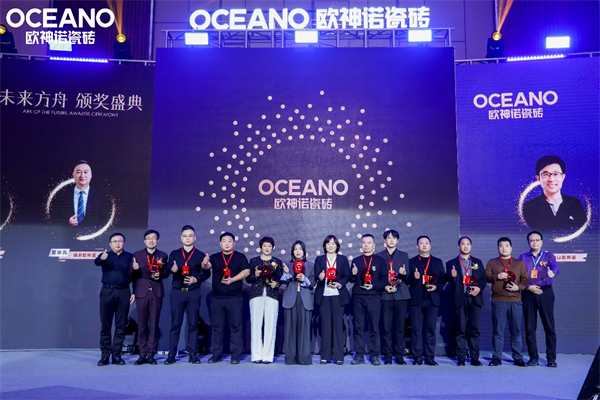 为了表彰2024年取得经营突破、表现突出的经销商,现场举行了隆重的“未来方舟颁奖盛典”,颁发最佳店面展示奖、全案交付最佳推广奖、高端产品推广奖、优秀经营先锋奖以及综合经营领航奖等多个奖项。沉甸甸的荣誉不仅是对经销商辛勤付出的肯定,更将激励全体欧神诺人奋辑笃行、再创辉煌。