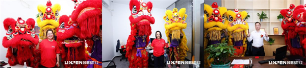 传统的醒狮点睛采青仪式,采青寓意为生意兴隆,生菜寓“生财”之意,生菜落地,“落地生财”,愿腾飞的祥狮能为领鹏时代摘得好彩头,能让领鹏时代品牌蒸蒸日上、财源滚滚。