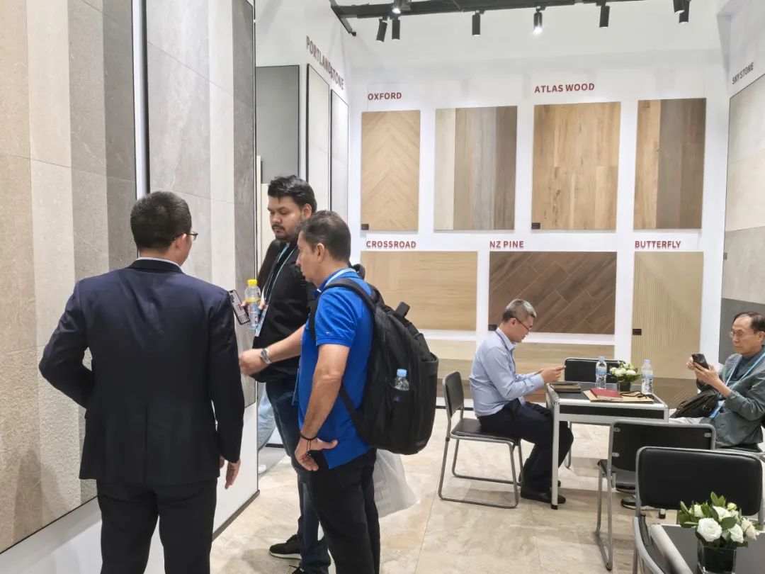 开展首日,马可波罗瓷砖展馆便吸引了众多观展客商前来参观问询,感受复古未来主义新品魅力,成为了本次展会中备受瞩目的的人气热点。