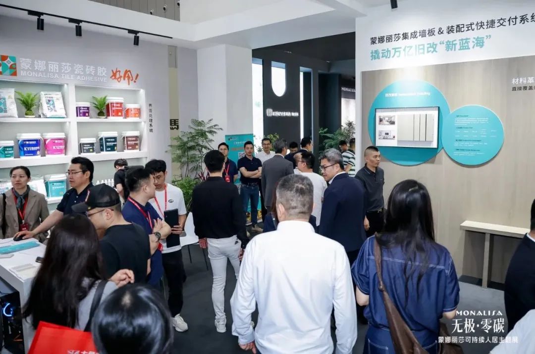 在今年的佛山潭洲陶瓷展上,蒙娜丽莎展示了先进的集成墙板&装配式快捷交付系统,破解旧改墙面翻新的难题,做到无需拆改搬家、48小时极速焕新。