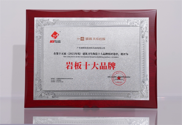 在2025年度“建筑卫生陶瓷十大品牌榜”评选中获得“岩板十大品牌”殊荣,充分证明了主办方、评审专家团及行业对在多个方面都具有雄厚实力并取得不俗成绩的顺辉天成的高度肯定。