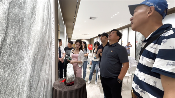 随后,与会人员共同参观了意特陶瓷砖的产品展厅,并就产品的花色、环保、防滑、耐磨等性能开展了详细交流。在交流中,华工院第二党支部各位同仁对意特陶产品的花色及性能表示认可,同时对意特陶下一步的环保瓷砖开发、高质量发展提出了宝贵建议。
