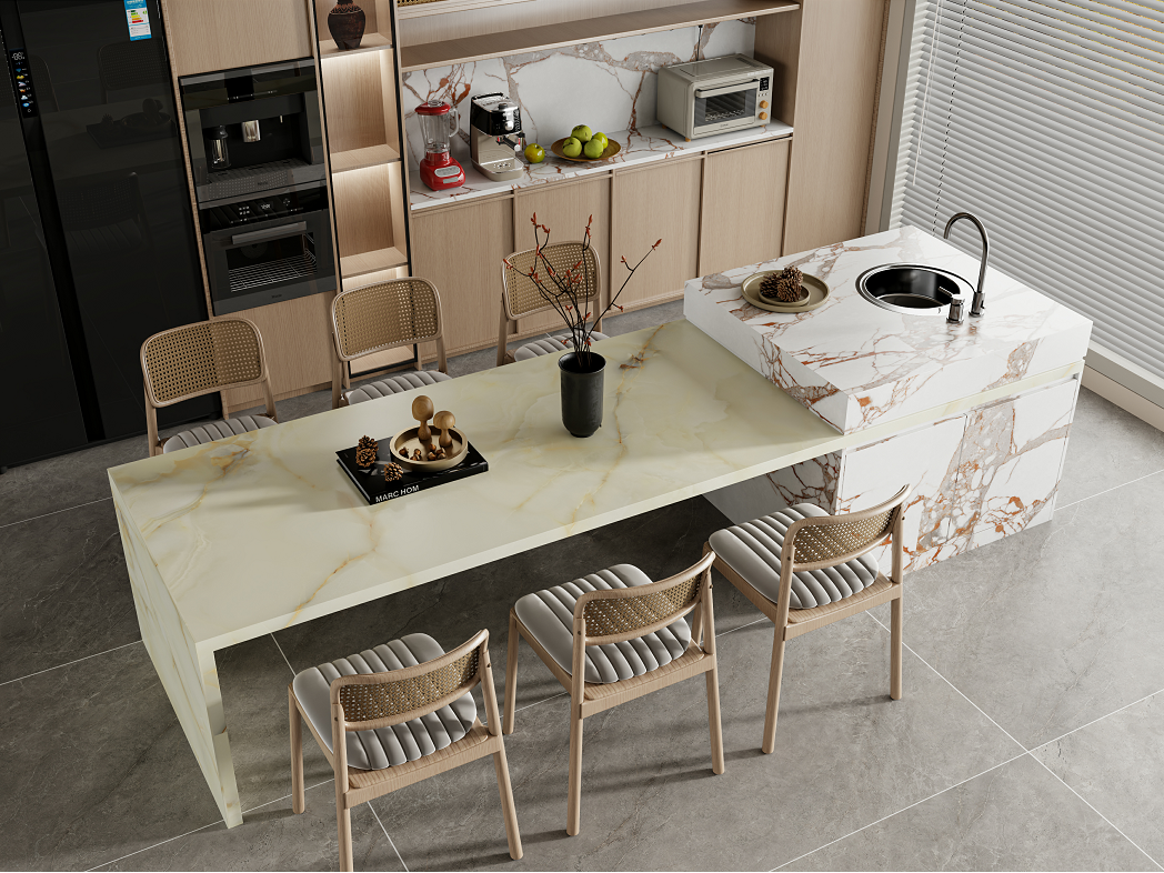 不同于普通岩板的冷硬,经过多重柔抛工艺处理