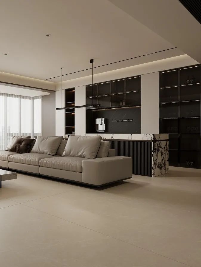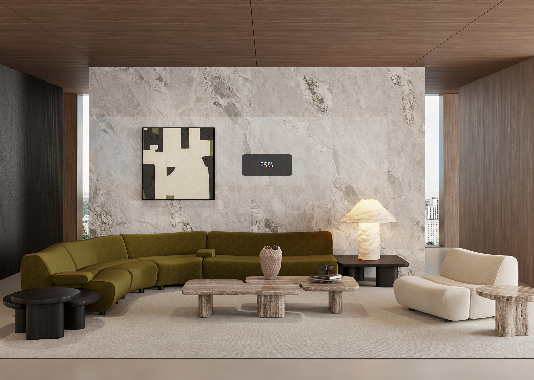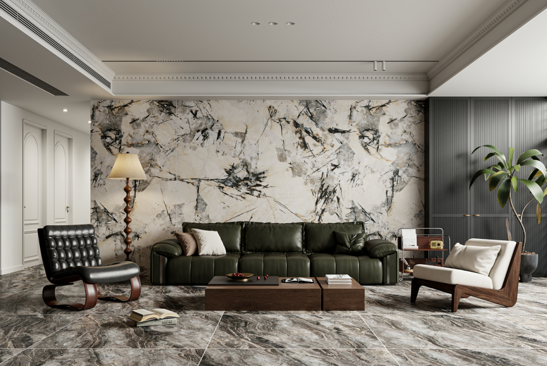 大宅精品型岩板——「雪狼·柔抛石材光」