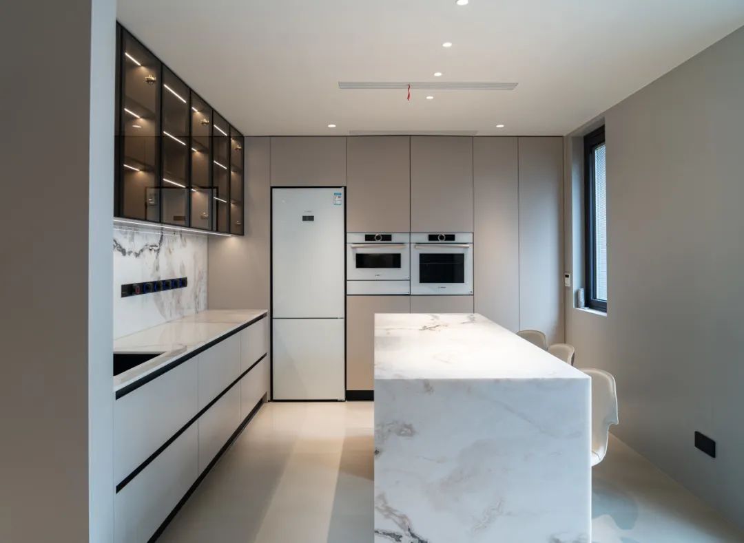 中岛台选用天然奢石打造,搭配精湛的工艺细节,无声地演绎着现代厨房的优雅格调。