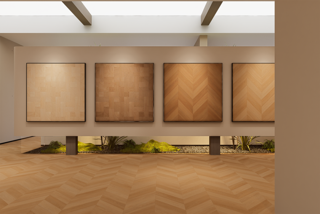 整个展厅二楼设计,将森林绿意揉合成流动的光影画卷,环绕空间奏响生态协奏曲,打造自然与现代的舒适对话体验。如此刚柔并济的蜕变协奏,自然光影的沉浸导演、生态与精工的共生哲学,令材料蜕变为可触摸的装置艺术,在设计精英的凝视中完成从工业品到藏品的惊鸿蝶变。