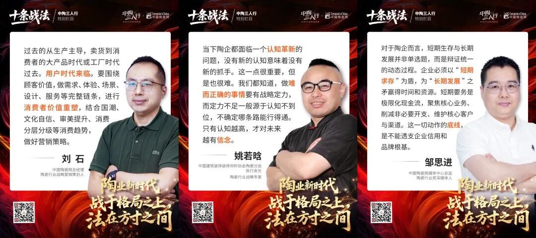 2025年,中国陶瓷网推出年度重磅栏目——“中国建陶行业十条典型战法”(以下简称十条战法)。该栏目旨在“荟萃破局十法,开启陶业新篇”,共推出了12篇深度文章和一系列观点视频,得到了资深从业者的积极参与和业界的广泛关注。