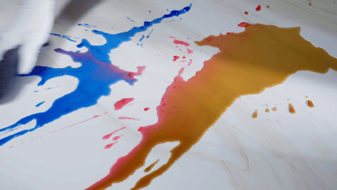 首先是双零吸水率(≤0.05%)。韵·镜界石以超低吸水率,构筑起高标准的洁净防护体系,瓷砖不易藏污渗污,酱油、颜料等生活常见污迹一擦即净,日常打理轻松搞定。