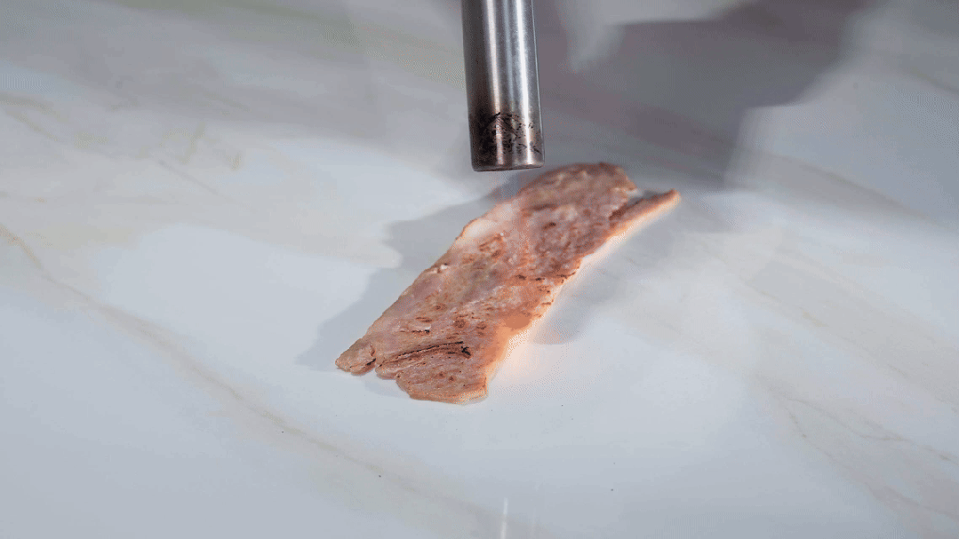 然后是极强的耐腐蚀性。韵·镜界石无惧酸碱腐蚀,高温火焰灼烧后花纹依旧清晰透亮,正常使用寿命可达20年以上。
