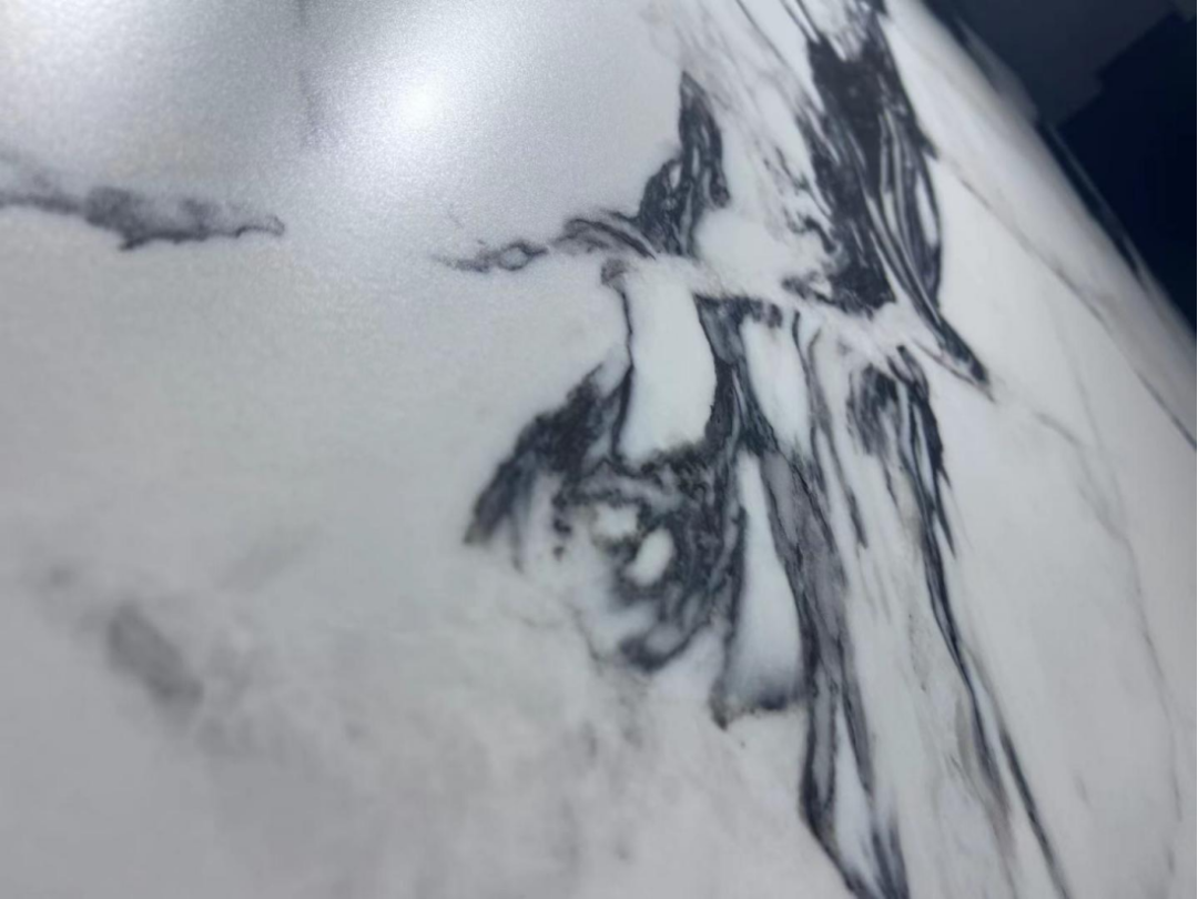 以不同风格莱姆石等天然理石为设计蓝本,精准捕捉天然石材历经岁月沉淀的纹理质感。依托先进数码喷墨设备与功能墨水,通过3D打印技术实现纹理的层层堆叠,叠加柔抛工艺处理,形成8度-10度的柔润光感,赋予产品温润如玉的触感,营造出不张扬却自带高级感的空间氛围,尽显低调奢华的生活格调。